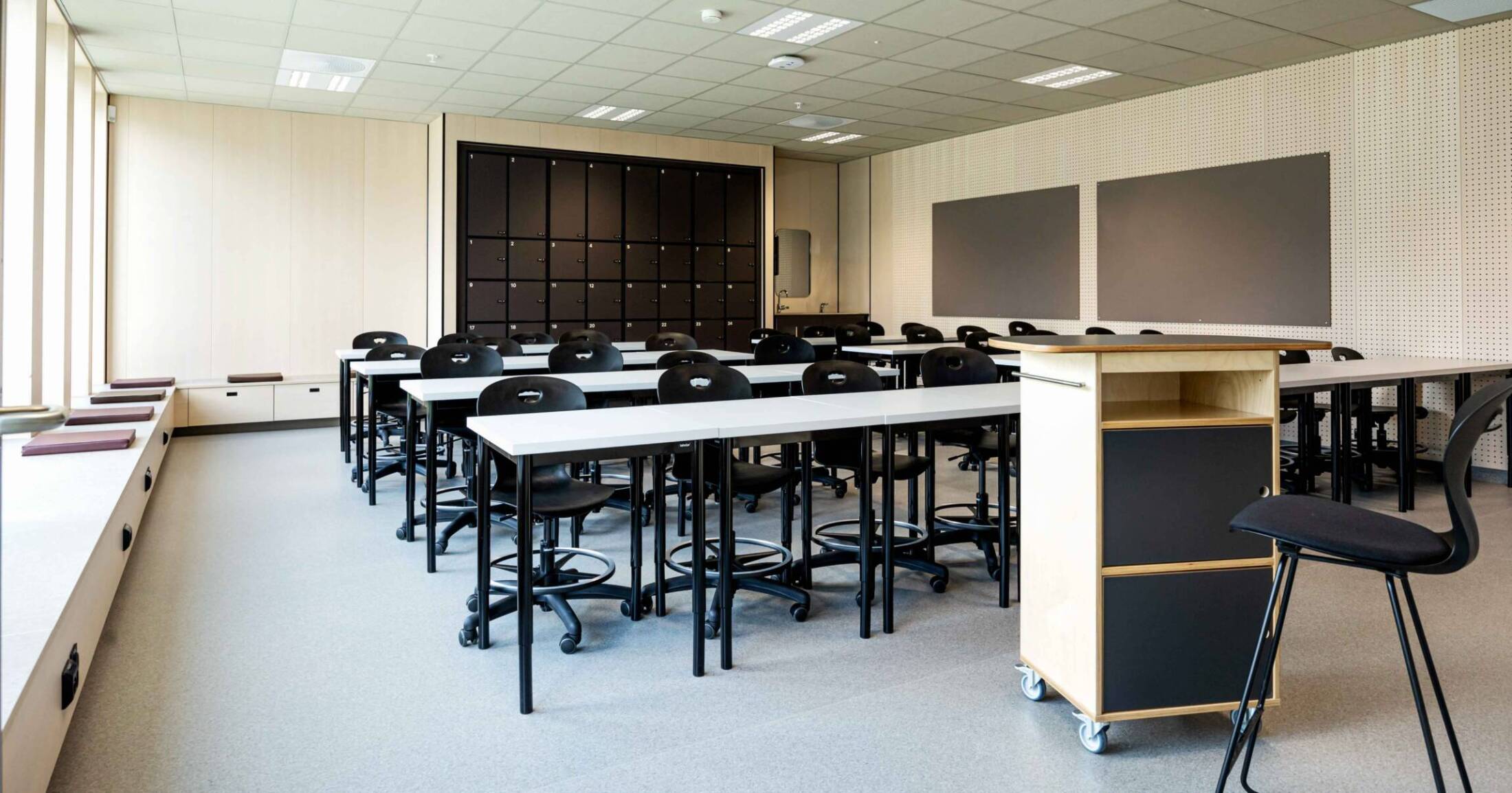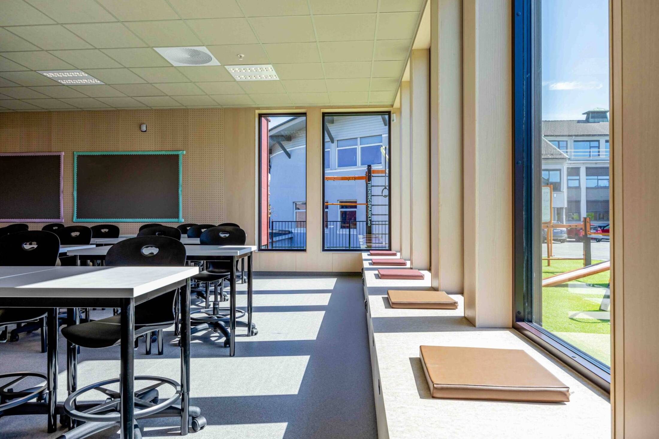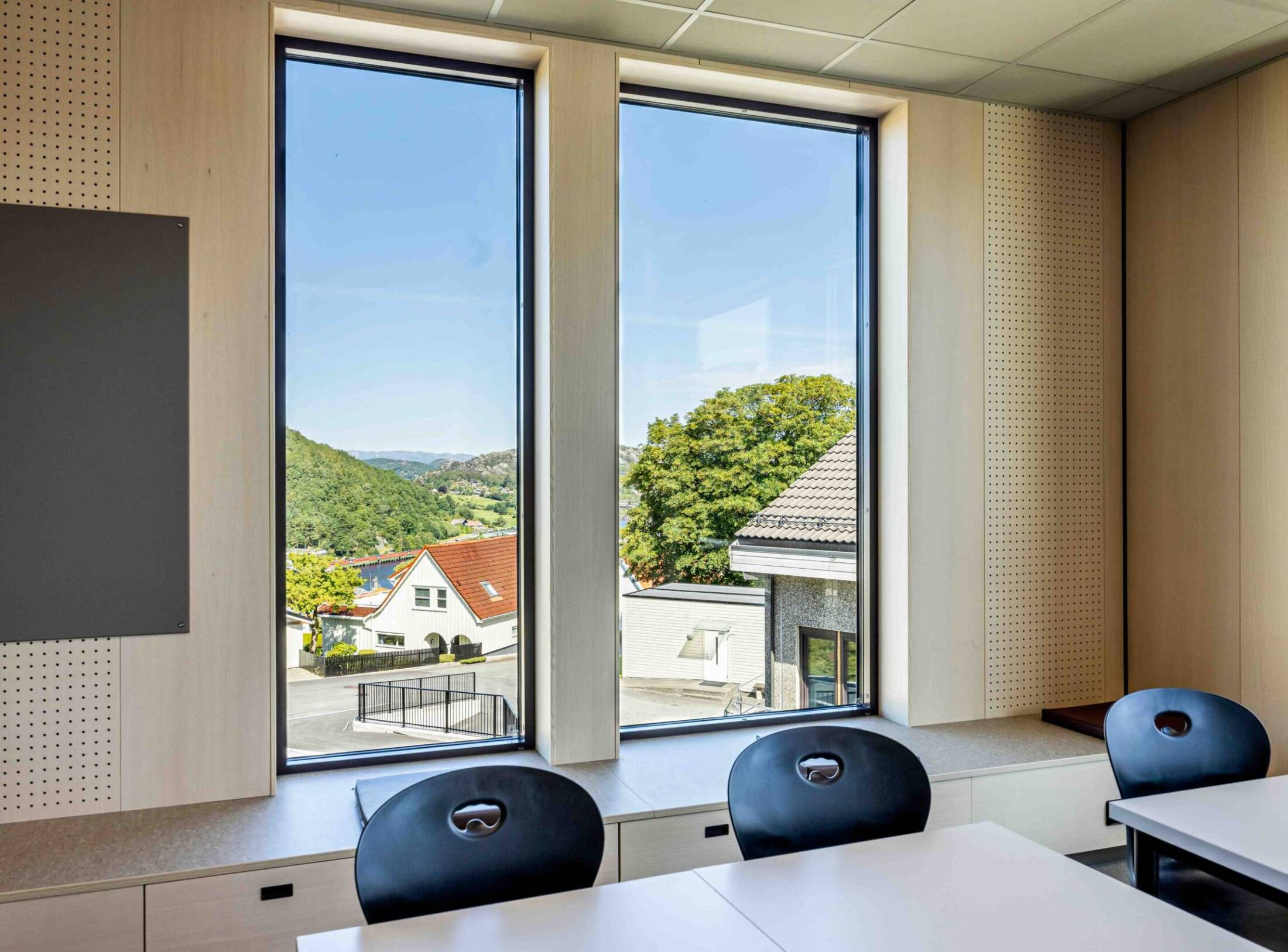Woodify har levert interiørfiner med ask toppfiner, både i utførelser med og uten brannimpregnering.